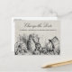 Alice in Wonderland Wedding Change the Date Postcard. Update your friends and family with the information about your new date or change of date for your wedding. Completely customise all the information and photo .