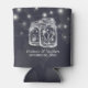 Wedding Cheers to Love Can Cooler / koozies Templates - Elegant Mason Jars and String Lights on Blue Floral Damask Background.
