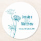 Beautiful simple aqua blue cows parsley outline flowerheads floral wedding paper coasters. A great personal addition to your wedding tables or for after wedding drinks. Personalise with your bride and grooms names. Perfect for flower themed, teal / aqua and white or garden weddings. Uniquely drawn and designed by Sarah Trett.