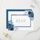 Wedding classic blue florals silver white RSVP Invitation Postcard