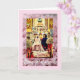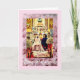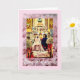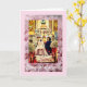 A couple exchanging vows for marriage. The photo image is bordered by a background of pink Peonies and a soft pink border. The font reads: "Congratulations." The inside message reads: "This is the start of a new beginning. Love well. Live well. You are Husband and Wife, Equals in your Marriage. Best Wishes." You can edit the wording to use this design for a wedding invitation.