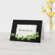 White note card with green ivy and romantic message on black for newlywed congratulations.