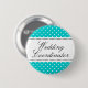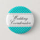 Wedding coordinator / planner pinback button for weddings, wedding receptions and rehearsals. White polka dot design on turquoise background. Background colour can be customised.