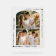 Celebrate and memorialise your wedding with this beautiful photo collage acrylic sign. The pretty layout includes space for one horizontal and two vertical photos, with each photograph having an elegant arched edge. The design also has decorative lines with hearts in the corners and room for your custom text. Add the bride and groom's names, wedding date, venue and a personal phrase (or any text you like) via the easy template fields. Your photographs will automatically fill the design spaces.