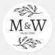 Wedding Couple Monogram Date Elegant Botanical Classic Round Sticker