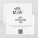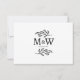 Simple wedding couple monogram initials with botanical line art leaf details for a beautiful and unique modern minimalist black and white wedding information and details card with QR code. Change any of the text and QR code destination website to personalise.