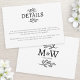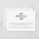 Simple wedding couple monogram initials with botanical line art leaf details for a beautiful and unique modern minimalist black and white wedding information and details card. Change any of the text to personalise.