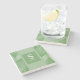 Great coordinate for an outdoor wedding or special event. This tropical themed wedding couple monogram offers a fun, yet classic appeal. Features green colour hues trimmed with tropical leaves. Use to complement tropical wedding themes and special events. The front of the wedding coaster has the couple's monogram and name. Use the template to personalise.
