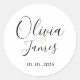Celebrate love and add a personalised touch to your wedding festivities with these elegant round wedding couple name stickers | Wedding Couple Name Labels | Round White Stickers | Wedding Hotel Bag Snack Bag Sweets Desserts Favours Stickers.
