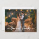 Modern Script Wedding Photo Thank You Card - Love and Thanks - White Script, Rustic Wood Back