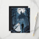 This wedding confirmation card for a Halloween-themed celebration combines mystery and elegance in a unique design. The silhouette of the couple walking through a dark forest toward a haunted castle creates a gothic and romantic atmosphere that will make your event unforgettable.