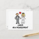 A cute cartoon of a newlywed couple captioned 'under new management'. Is it the bride or groom that wears the trousers in the marriage? Great for a wedding gift, or to wear on honeymoon.
