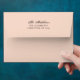 This envelope from the Vanilla White collection has a blush pink exterior, black coloured font with vanilla white watercolor roses on the interior. The 'return' address on the back is customisable. Using Zazzle's edit feature the template can be easily changed to the details that suit your needs best. The return address sits high enough for a monogrammed sticker to be placed over the envelope seal. If you require assistance with editing, please don't hesitate to message us via Zazzle Chat. Wedding Custom Dark Moody White Rose Blush Pink envelope.