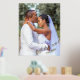 Elegant wedding photo foil print, with the large custom wedding photo as the focal point. A thin gold foil frame, surrounds the picture. Personalise the custom text and photo for a special keepsake of your wedding day.