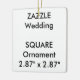 Custom SQUARE White Ceramic Ornament Decoration 2.87" x 2.87", with strand of gold thread for hanging, full-colour, full-bleed printing, photos, images and personal message printed on both sides. Great for displaying romantic messages or photos of the bride & groom.