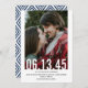 Modern and stylish save the date flat card featuring simple typography with navy blue diamonds pattern. Customise this card by adding your own photo and details.