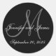 Personalised Envelope Seal. Black white and grey, wedding date, first names and initial monogram sticker. Design by Elke Clarke ©2008. Great as an envelope seal for your wedding invitations or as a label for your wedding favours or wedding sweet treat bags or wedding cake boxes. Personalise with your bride and groom names, monogram initial and wedding date. Then choose your colours and from a variety of shapes and sizes.