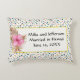 Wedding date memory pillow with date and place of wedding. The design is colourful dots with tropical flowers like a Frangipani. The words on the pillow can be changed. Thanks to Creative Fabrica for some of the elements in the design.