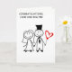 This lovely card is for that special couple on their wedding day. It has stick figures of newlyweds that is minimalist but extremely impactful.
