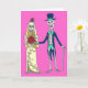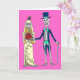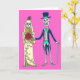 Wedding Day of the Dead Greeting Card with Bride and Groom on pink background