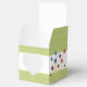 Purple, pink rose and olive green print, personalise these little decorative patterned favour boxes for your wedding guests, olive green background or white accent stripes can be changed to any colour to suit your special day, text on both ends can be personalised to any message, or text, flowers or background pattern are removable.