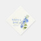 Beautiful delphinium spikes painted blue fine art botanical wedding paper napkins. A great customised addition to your wedding tables. Personalise these wedding napkins with your with your bride and grooms names, and wedding date. Perfect for delphinium, blue themed or garden weddings. Unique design and original pan watercolor fine art painting by Sarah Trett.