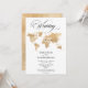 Planning wedding at the romantic destination? Invite your guests with this beautiful Invitation with a gold world map and your custom destination marked with the moveable heart and luxury typography