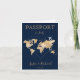 Modern and Elegant World Map Invitation Wedding Destination, like passport. Two hearts and a plane on the golden world map background
