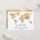 Wedding Destination World Map Gold Removable Heart Invitation
