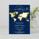 Planning wedding at the romantic destination? Invite your guests with this beautiful Invitation with a real gold foil world map, navy background