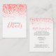 Wedding reception enclosure card is part of the matching modern living coral colour cascade art bridal wedding set. Ideal to use as a wedding information card after the ceremony, or a directions card to keep you guest informed of the day and party ahead, also can be used a gift registry card, or accommodation card, or even a wishing well card, or a wedding website card by changing the customisable text on the front and reverse. Original art modern cascade of painted long dots and design by www.mylittleedenweddings.com on zazzle.