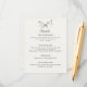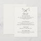 Charcoal and linen wedding details card with vintage inspired typography and a hand drawn illustration of birds with a bow.