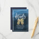Elegant Faux Gold Foil Pineapple Couple on on Navy Blue Wave Pattern Background.