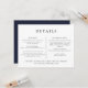 Wedding details information template enclosure card. Template provides multiple lines for your detailed information. Including reception, accommodations and website. Back of card features solid navy blue colour.