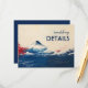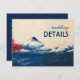 The front of the card showcases a mesmerising depiction of Mount Fuji. Its iconic snow-capped peak elegantly stands against a backdrop of serene blue and white waves, interspersed with vibrant strokes of red, evoking a sense of calm and timeless beauty1. The text "wedding DETAILS" is prominently displayed in a captivating combination of cursive and bold, uppercase fonts, seamlessly blending with the artistic design.