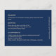 Turning the card over, guests are greeted with a soft blue background, offering a gentle contrast to the vivid front. Here, they'll find all the essential information for the wedding, from accommodation options and transportation details to any other relevant information. Nestled discreetly on the side is a wedding website address, that can easily be removed if desired.