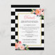 Modern Floral Black White Stripes Wedding Details Card.