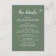 Wedding Details Enclosure Card, in forest sage green theme, where you can include your wedding reception, accommodation options, your wedding website and others.