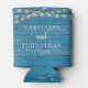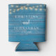 Wedding Dinner and Party, Rustic String Lights, navy blue wood background Can Cooler