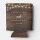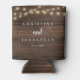 Wedding Dinner and Party, Rustic String Lights, dark wood background Can Cooler
