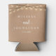 Wedding Dinner and Party, Rustic String Lights, brown kraft paper background Can Cooler