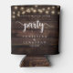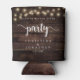 Wedding Dinner and Party, Rustic String Lights, dark wood background Can Cooler