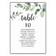 Wedding Dinner Guest Seating Table Chart Card, Modern Greenery Eucalyptus themes.