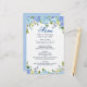 Wedding Dinner Menu Blue Hydrangea Floral Greenery