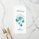 Wedding dinner menu teal coloured butterflies heart design. Customise this teal coloured wedding menu with your wedding details. Should you require any help with customising then contact us through the link on this page. Teal coloured heart and butterflies design personalised wedding menu