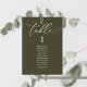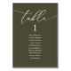 Wedding Dinner Guest Seating Table Chart Card, Modern Classy romantic calligraphy Olive Green greenery themed.