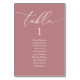 Wedding Dinner Guest Seating Table Chart Card, Modern Classy romantic calligraphy in dusty rose themed.