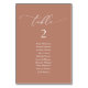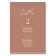 Wedding Dinner Guest Seating Table Chart Card, Modern Classy romantic terracotta brown earthy themed.