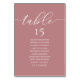 Wedding Dinner Guest Seating Table Chart Card, Modern Romance Dusty Rose themed.