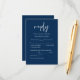 This is the beautiful Modern, Calligraphy, Elegant RSVP (Respond) Enclosure Card, in Navy Blue font, where you can edit, change colour and format it as per your design requirement, with meal options, reserved seats, number attending and song request option.